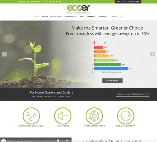 We are happy to announce the launch of Ecoer’s new interactive website. It features informative sections for customers, as well as a custom log-in for the company’s dealers and distributors. Check out the website below.